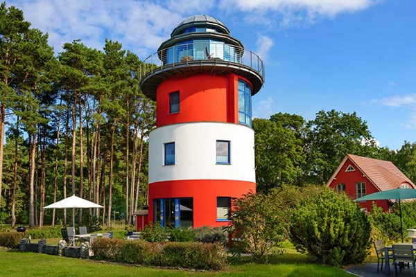 Eine Übernachtung in einen Leuchtturm ist für viele Menschen eine besonders romantische Vorstellung. Gerade wenn es draußen so richtig stürmt und das Meer tobt, fühlt man sich ganz oben im Turm so richtig wohlig und sicher. Diese Ferienwohnung im Stil eines Leuchtturms im Nordosten von Rügen bietet auf 4 Etagen ausreichend Platz bis zu 5 Personen. Die gemütliche Einrichtung lässt euch schnell wie zu Hause fühlen und der 360°-Rundumbalkon auf der obersten Etage wird euch mit Sicherheit begeistern!