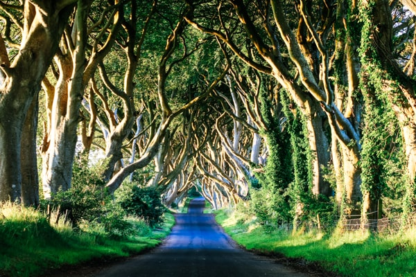 In Nordirland befinden sich allerdings noch zahlreiche weitere Game-of-Thrones-Schauplätze. Gedreht wurde beispielsweise auch nahe Belfast in den Dark Hedges von Ballymoney – einer jahrhundertealten Buchenallee, die eine ganz eigene, fast mystische Atmosphäre versprüht. Ebenso wurden viele Serien-Szenen im Nationalpark Tollymore Forest Park aufgenommen. Die rauen Eiseninseln, in der Serie Heimat von Theon Graufreud (Alfie Allen), haben ihre Kulisse ebenfalls in Nordirland gefunden, nämlich in Ballintoy Harbour. Daneben gibt es noch weitere GoT-Drehorte wie zum Beispiel Fair Head, die Höhlen von Cushendun oder die Kreidefelsen von Larrybane. Serien-Fans kommen bei einem Urlaub in Nordirland also voll auf ihre Kosten!