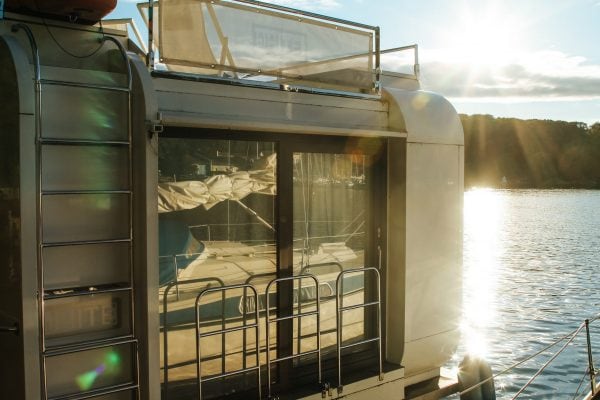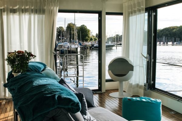 Das Besondere an dem 45 m² großen Boot ist die Nähe zur Hauptstadt Berlin. So kann man einfach aus dem Großstadtdschungel entkommen und am Stößensee eine kleine Auszeit einlegen. Gerade Wasser hat eine beruhigende Wirkung, die sich positiv auf unser Gemüt auswirken kann. „Wir haben auch viele Berliner Gäste, die direkt aus der Stadt zu uns kommen, um hier ihre Ruhe zu haben. Einige Autoren oder Musiker nutzen beispielsweise gerne unser Hausboot, um Lieder oder ein Buch zu schreiben – einfach, um in dieser besonderen Umgebung kreativ zu werden“, so Pommer in unserem Gespräch.