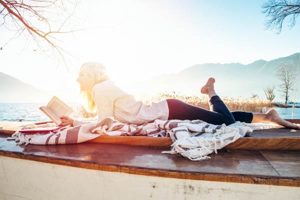 Damit dir während deiner Auszeit nicht langweilig wird, empfiehlt es sich, auch Bücher und Zeitschriften einzupacken. Bei einem guten Buch und einem Glas Wein lässt es sich nämlich auch bei einem gemütlichen Abend auf dem Sofa entspannen.